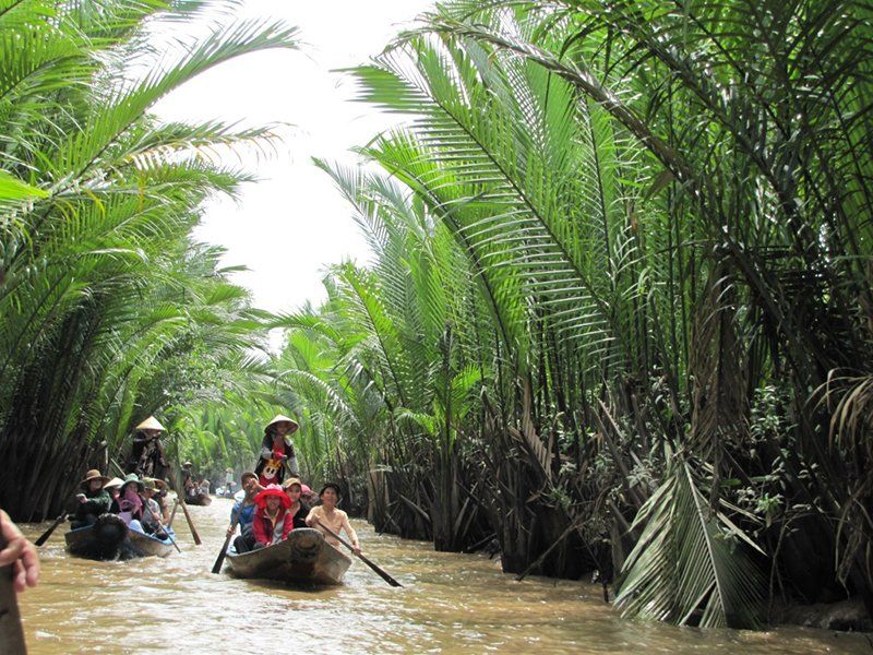 Cù lao Thới Sơn còn gọi là cồn Lân, nằm ở hạ lưu sông Tiền, để đến đây bạn đi bằng thuyền. Tại cù lao, bạn nên trải nghiệm hình thức du lịch đặc trưng của miền sông nước, đó là đi đò xuôi theo những con rạch ngoằn ngoèo giữa hai hàng dừa nước rậm rạp. Ảnh: Huấn Phan.